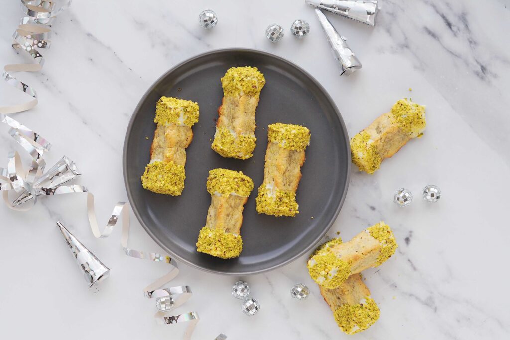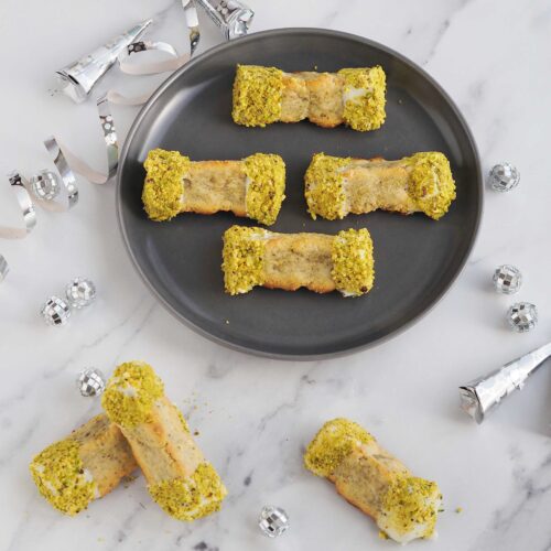 Den kan formes som klassiske ringe, små stave eller mundrette bidder. Og fordi pistacien giver en naturlig farve, ser den ekstra flot ud på et dessertbord.