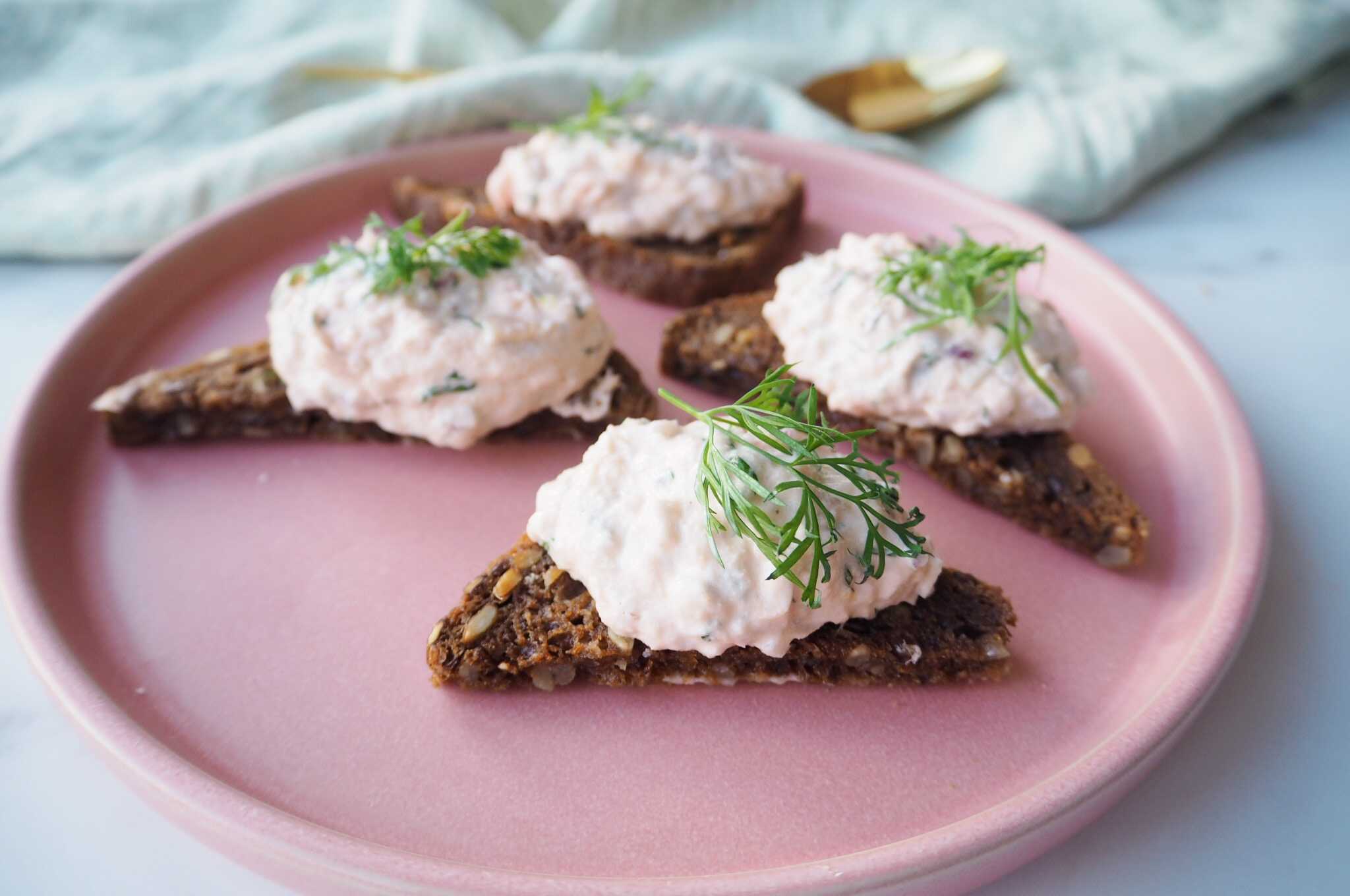 Varmrøgetlaksesalat på smørstegt glutenfri softkernebrød